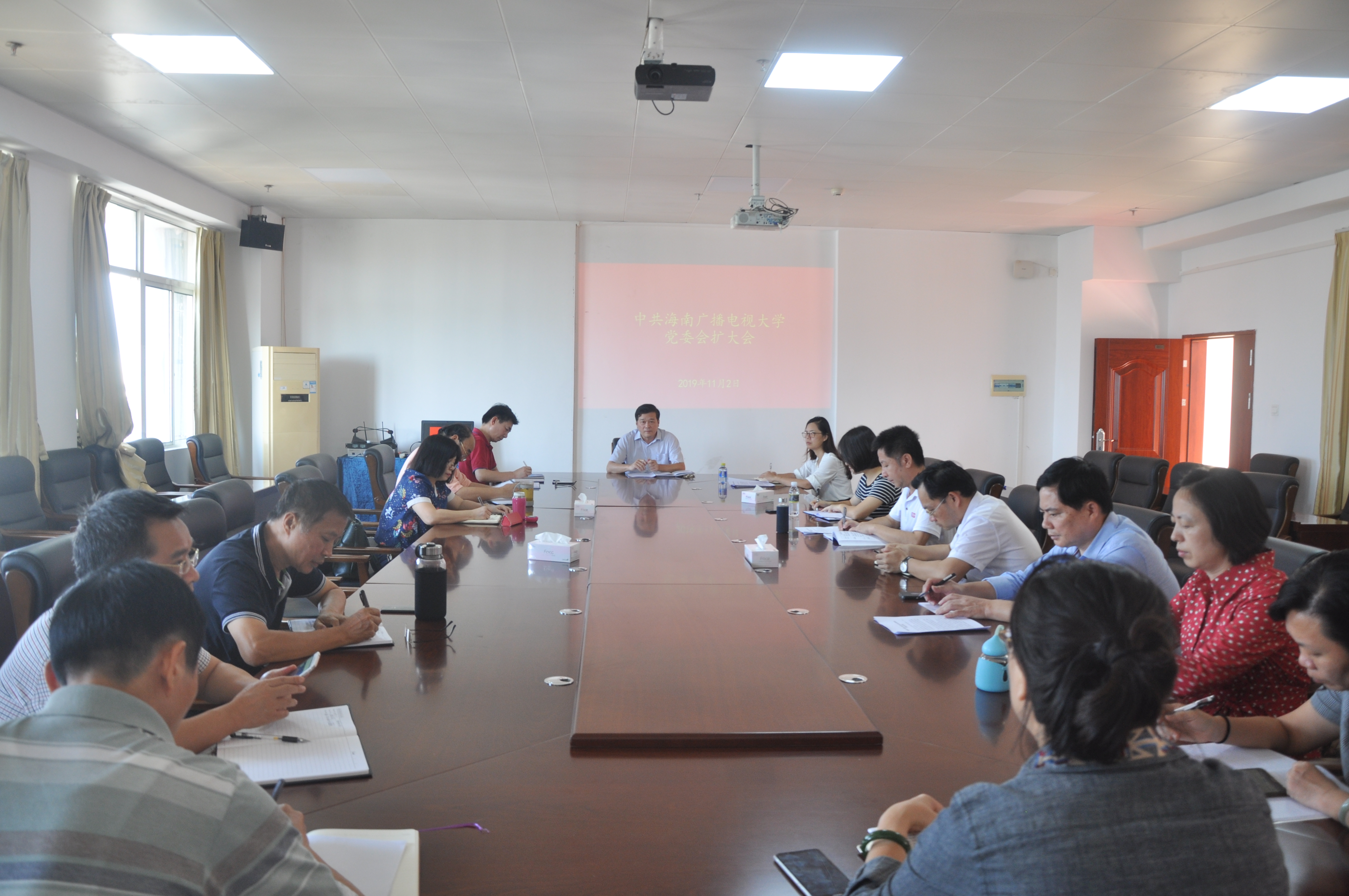 通讯员张冠南摄影报道 11月2日下午,我校召开党委会扩大会议学习传达十九届四中全会精神。校长温强,副校长张君玉、符成彦,校党委委员尚世奇,各处室负责人、各总支书记参加会议,校党委副书记、校长温强主持会议。会议原原本本传达学习《中国共产党第十九届中央委员会第四次全体会议公报》及11月1日召开的省委常委会会议精神,研究讨论《中共海南广播电视大学委员会学习宣传贯彻十九届四中全会精神实施方案(草案)》。会